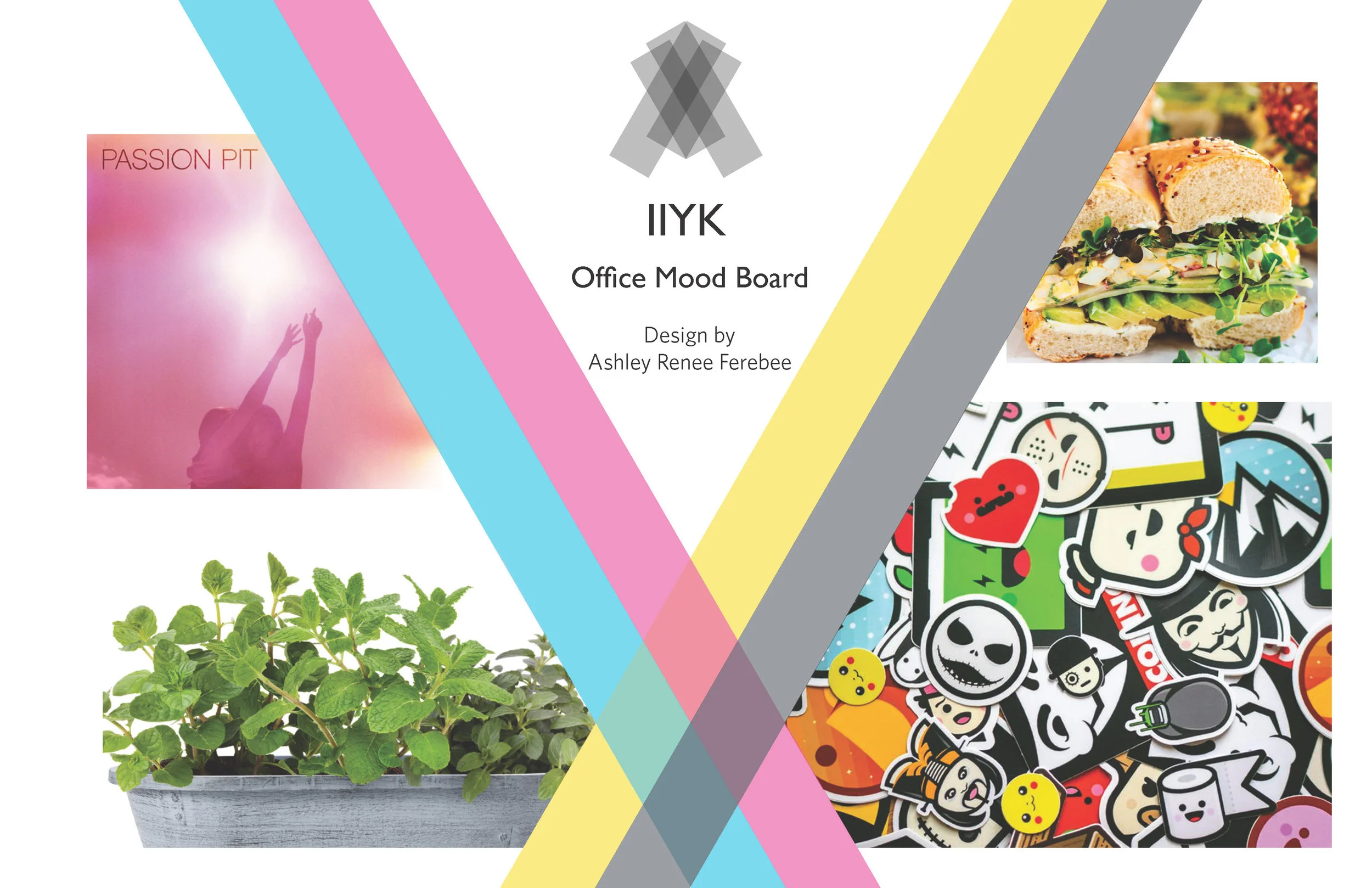 For my first office project I wanted to design a space for another creative type so I choose to create a graphic design studio. The crossing of the primary color pigments in printing inspired to play with angles, intersecting lines, and fresh vibrant colors. With this spunkiness the design felt very Millennial so the company name and logo is a play on Y2K and the intersecting lines. Those crossing lines bounce throughout the office from the reception feature wall to the tilted office and kitchen space. CMYK was also the inspiration for the color palette with a rich buttercream, teal, coral, and shades of gray.